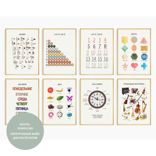 Комплект из 40 обучающих ЦИФРОВЫХ плакатов | Collection of educational digital posters in Russian, 40 Topics for Young Children & Preschoolers