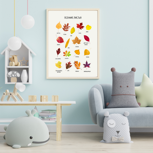 Fall Leaves Educational Poster in Russian | Learning Printable Poster | Digital Download