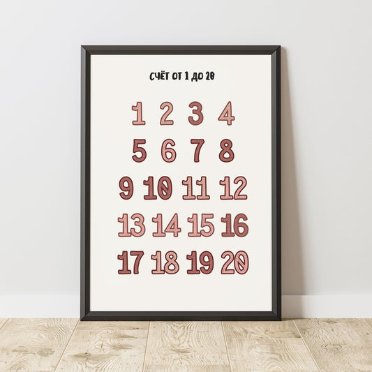 Numbers from 1 to 20, Educational Poster, Preschool, Montessori