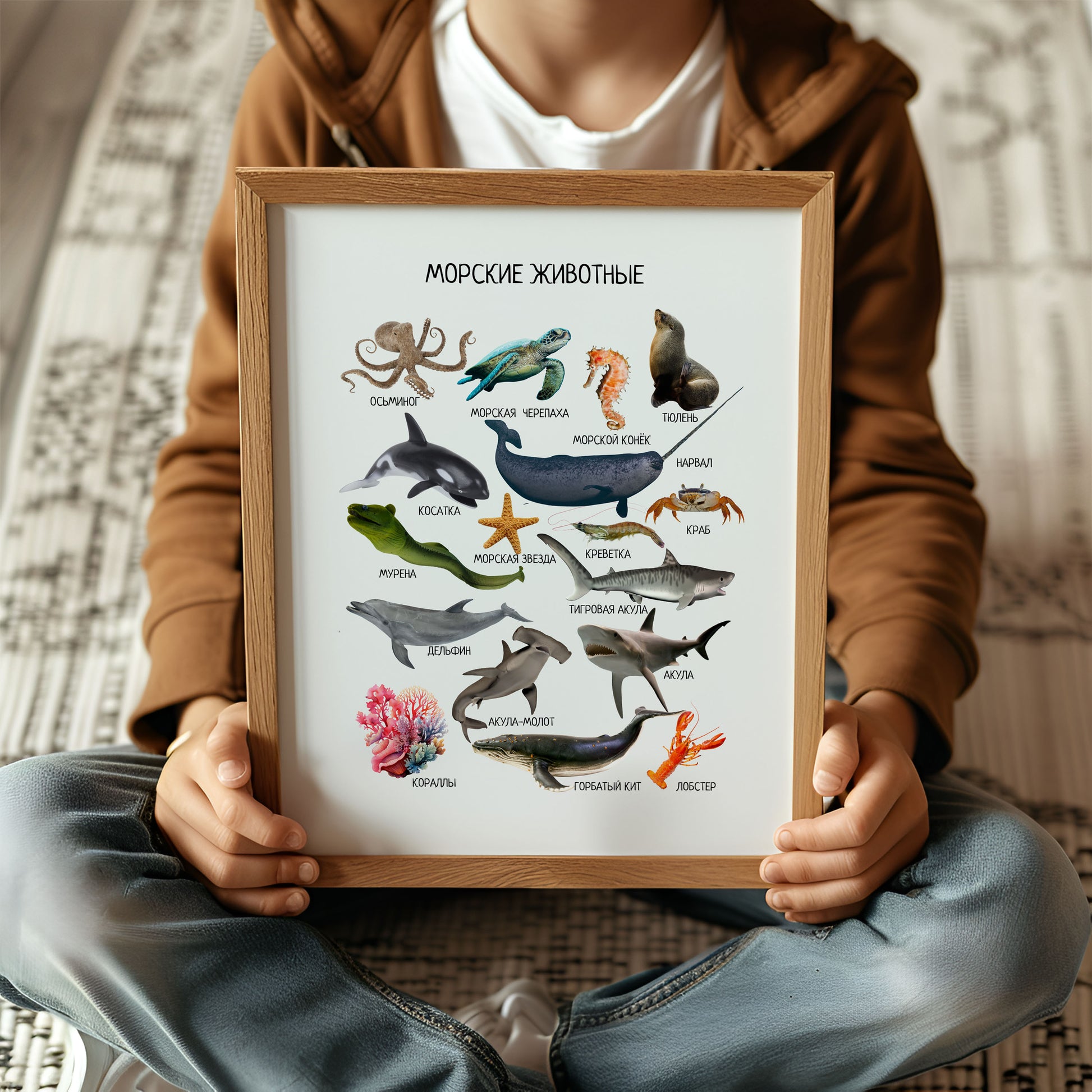 Marine Animals Poster in Russian – Ocean Life Wall Print for Kids