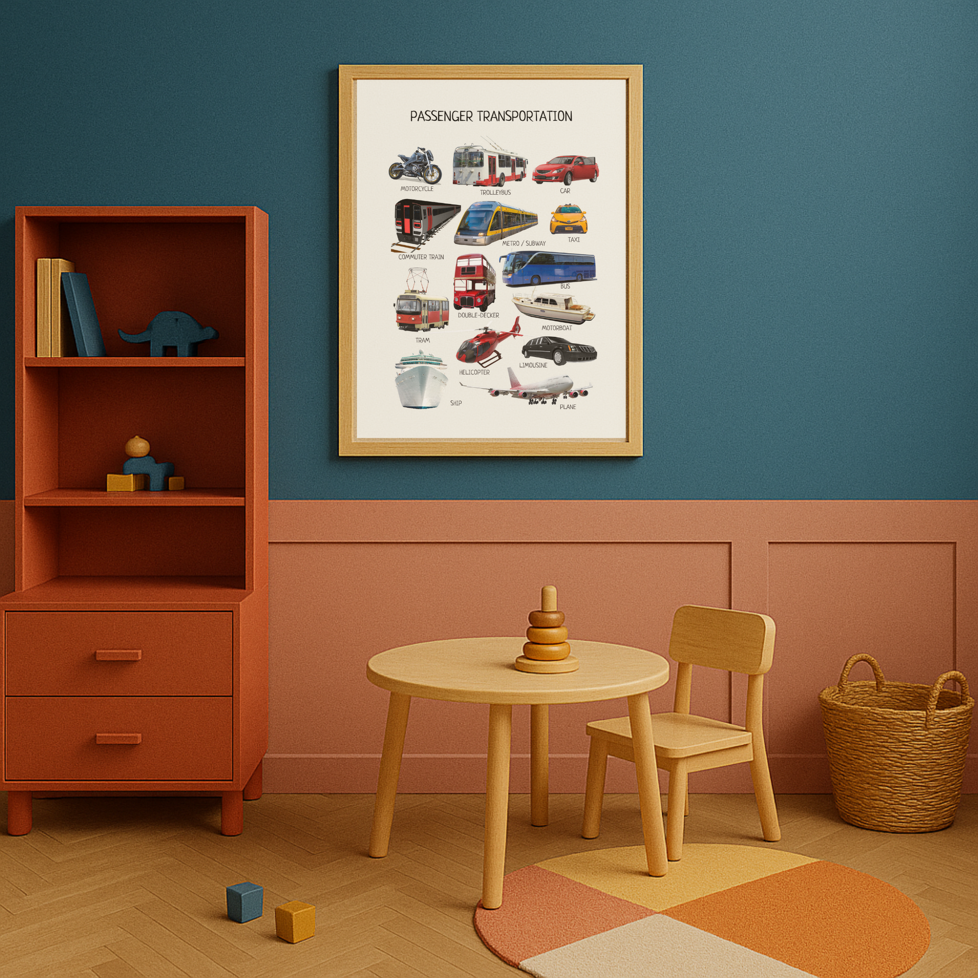 Passenger Transport Poster, Educational Vehicles Poster, Montessori Wall Art.