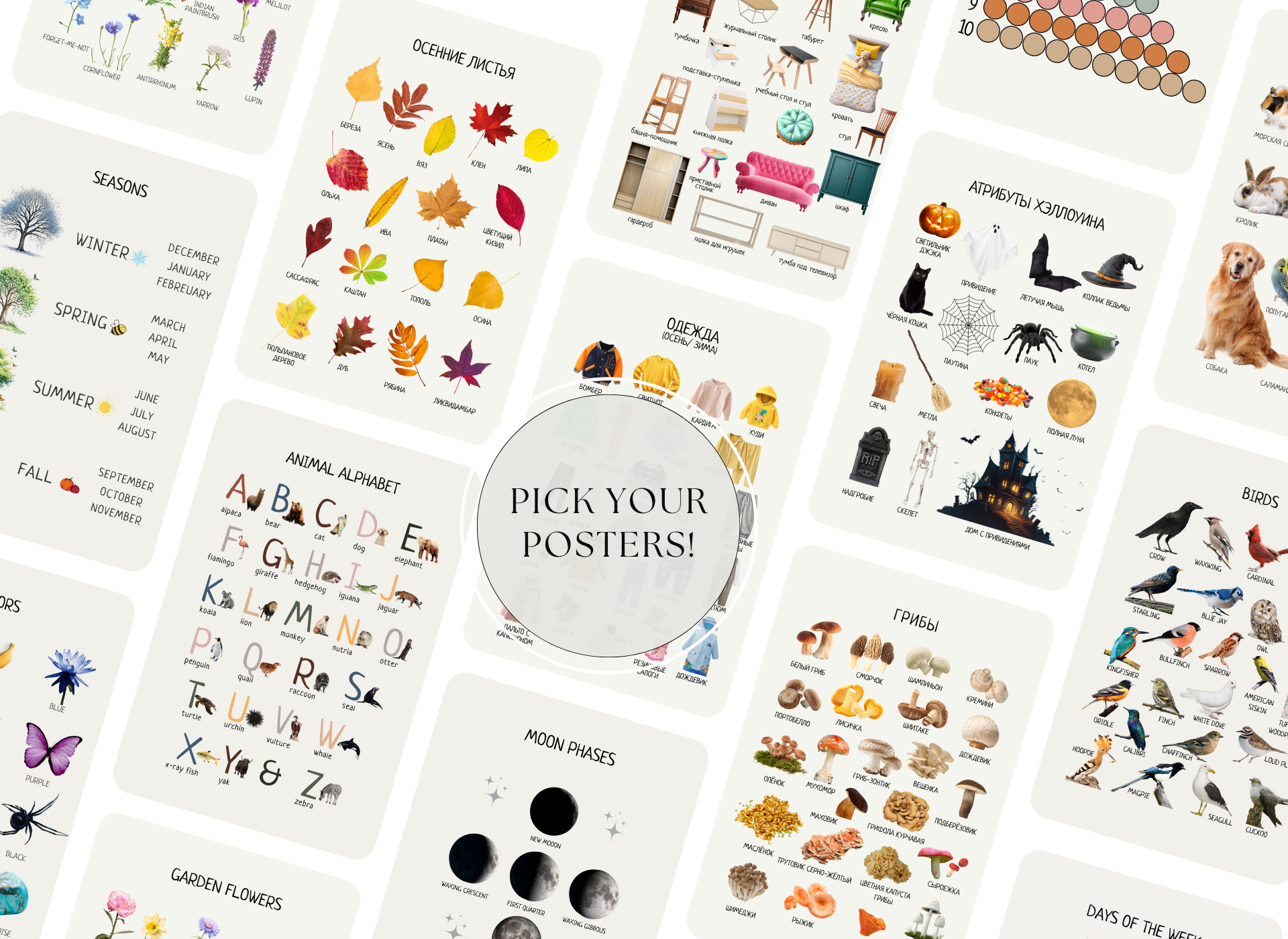 Создайте красивую развивающую среду с индивидуальным набором постеров.